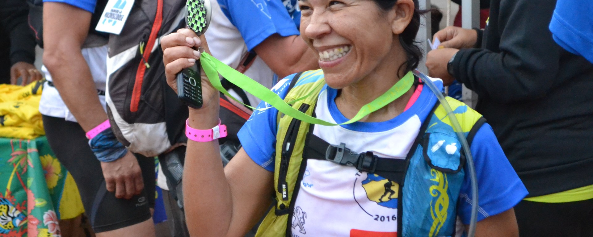 Sur la ligne de départ, à Cilaos, en ce vendredi 21 octobre 2016, Rosalie Chapelin est survoltée. Toujours le sourire aux lèvres, elle s’apprête à prendre le départ de l’une des courses à pied les plus rudes de La Réunion – derrière son grand frère Le Grand Raid – le Trail de Bourbon. Une bonne partie de sa famille a répondu présente pour l’événement, leur soutien est primordial. Parmi la foule de coureurs sur les starting-blocks, Rosalie est loin d’être la plus « pro », une heure avant le départ elle empruntait in extremis la montre de sa nièce et cherchait encore comment mettre en marche sa lampe frontale. À quelques minutes du coup de sifflet, quelque chose manque dans les baskets … ah oui, les semelles ! « On les a oubliées à la maison ! Dans le bloc, J’ai pris mon téléphone, j’ai fait le premier numéro trouvé sur mon téléphone, ma sœur. “Allo Brigitte ? Dit à ma fille d’emmener mes semelles à Hell Bourg[1] !”. Tout le monde m’a entendu et a rigolé ». Des péripéties qui dissuaderaient les parieurs, … et pourtant ! Après 33 heures de courses à travers les cirques et pitons de l’île de la Réunion – dont plusieurs en plein soleil sans casquette (restée dans la voiture !) – Rosalie a bel et bien survécu à cette épreuve. Plus encore, elle a fait sensation en arrivant au stade La Redoute de Saint-Denis 404e sur les 1600 participants[2]. Pour une première, c’est un coup de maître.