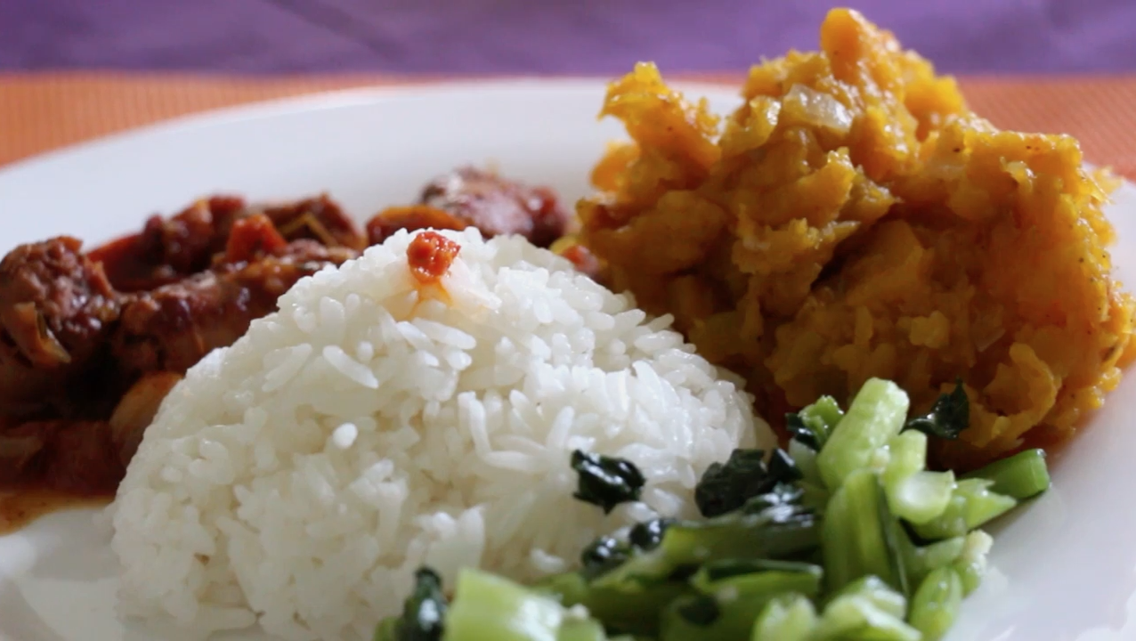 Remuer énergiquement puis incorporer la citrouille découpée en petits morceaux. Ajouter deux verres d’eau et couvrir. Laisser mijoter jusqu’à ce que la citrouille réduise. Compter entre 20 et 30 minutes à feu doux pour obtenir une sorte de purée orangée et parfumée. Idéalement, servir avec un rougail saucisse et du riz. Bon appétit !